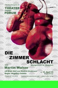 Wenn die Liebe fehlt ....Im Theater Center Forum hatte jetzt Martin Walsers Tragikkomödie "Die Zimmerschlacht" Premiere: in einer Inszenierung von Angelica Schütz, mit einem raffiniert minimalistischen Bühnenbild von Erwin Bail und mit seinem sehr guten Schauspielerduo: Birigt Wolf und Manfred Stadlman. Ungeheuer präsent, prägnant und facettenreich bringen die beiden den Zuschauern die Alltagstragödie zweier durchaus bedauernswerter Menschen nahe: Theater zum Nachdenken. Wiener Zeitung(cher)/18.04.2009 |